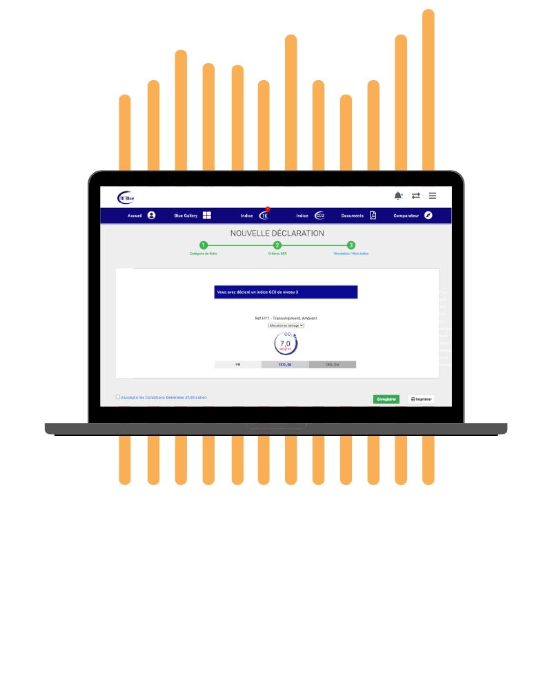- Reporting et suivi automatisé et complet des émissions GES de l’ensemble des flux logistiques : Assurer la conformité du calcul des émissions GES de toutes les étapes des chaînes de transport avec l’offre globale TK’Blue, garantie conforme à l’ISO 14083